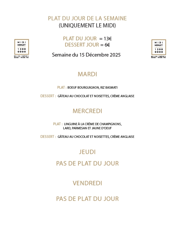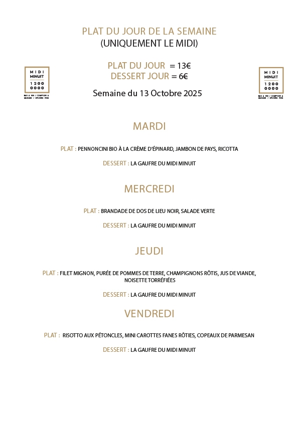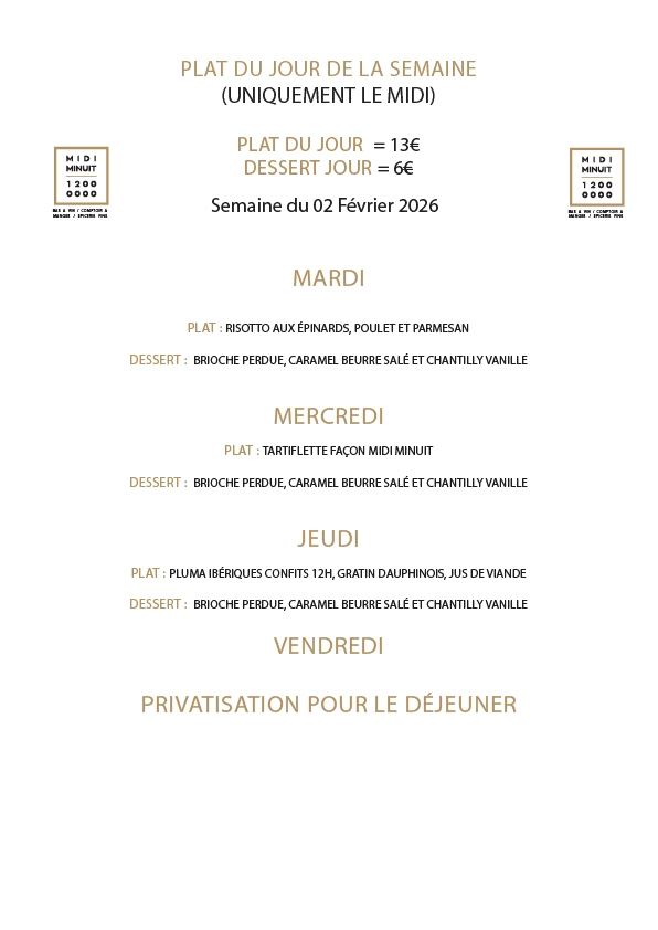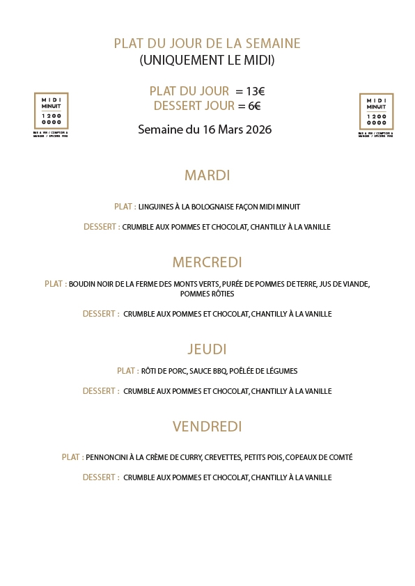 Menu de la semaine Toutes les semaines, retrouvez le menu de la semaine à jour et concocté spécialement pour vous ! Partagez l'article