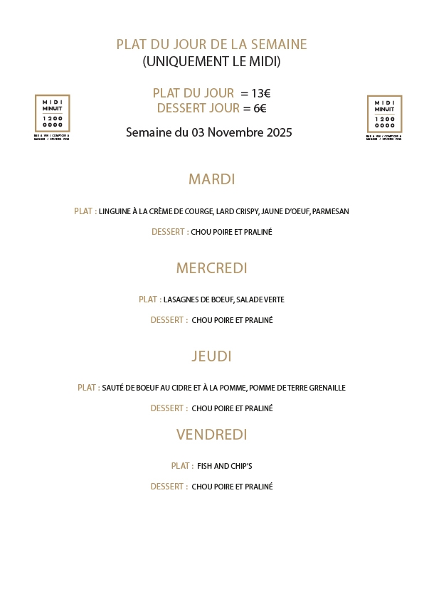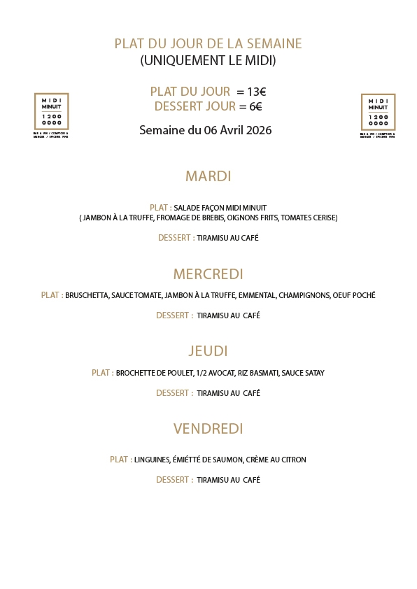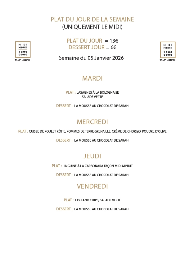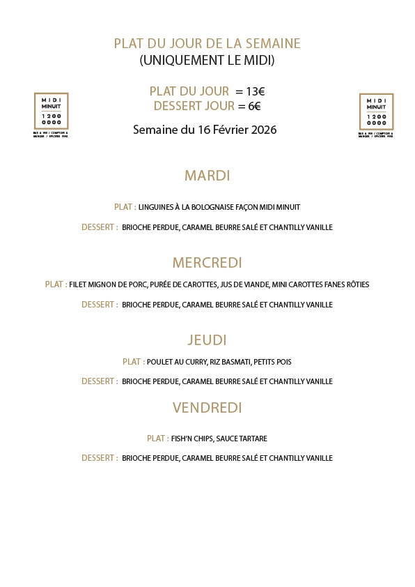 Menu de la semaine Toutes les semaines, retrouvez le menu de la semaine à jour et concocté spécialement pour vous ! Partagez l'article